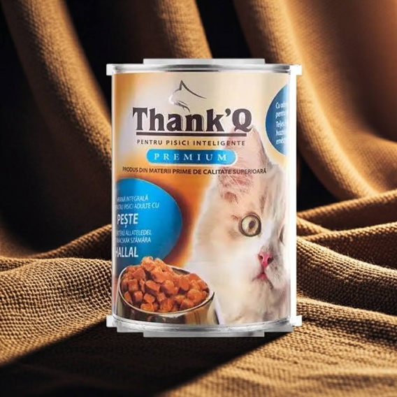 Pełnoporcjowa mokra karma THANK’Q dla dorosłych kotów z rybą. Produkt dostarcza wszystkie niezbędne składniki odżywcze. Opakowanie 415 g.